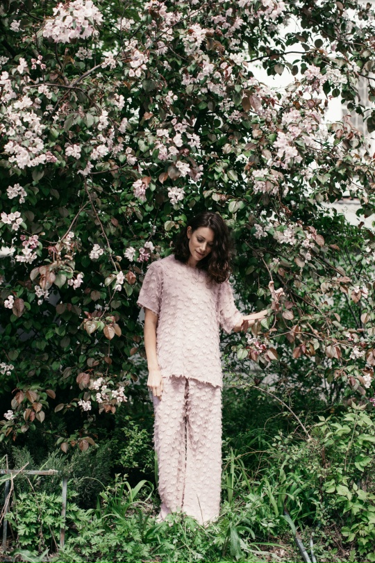 Брюки из шифона с бахромой. Талия на резинке, карманы в подкройном бочке. Цвет: темно-розовый