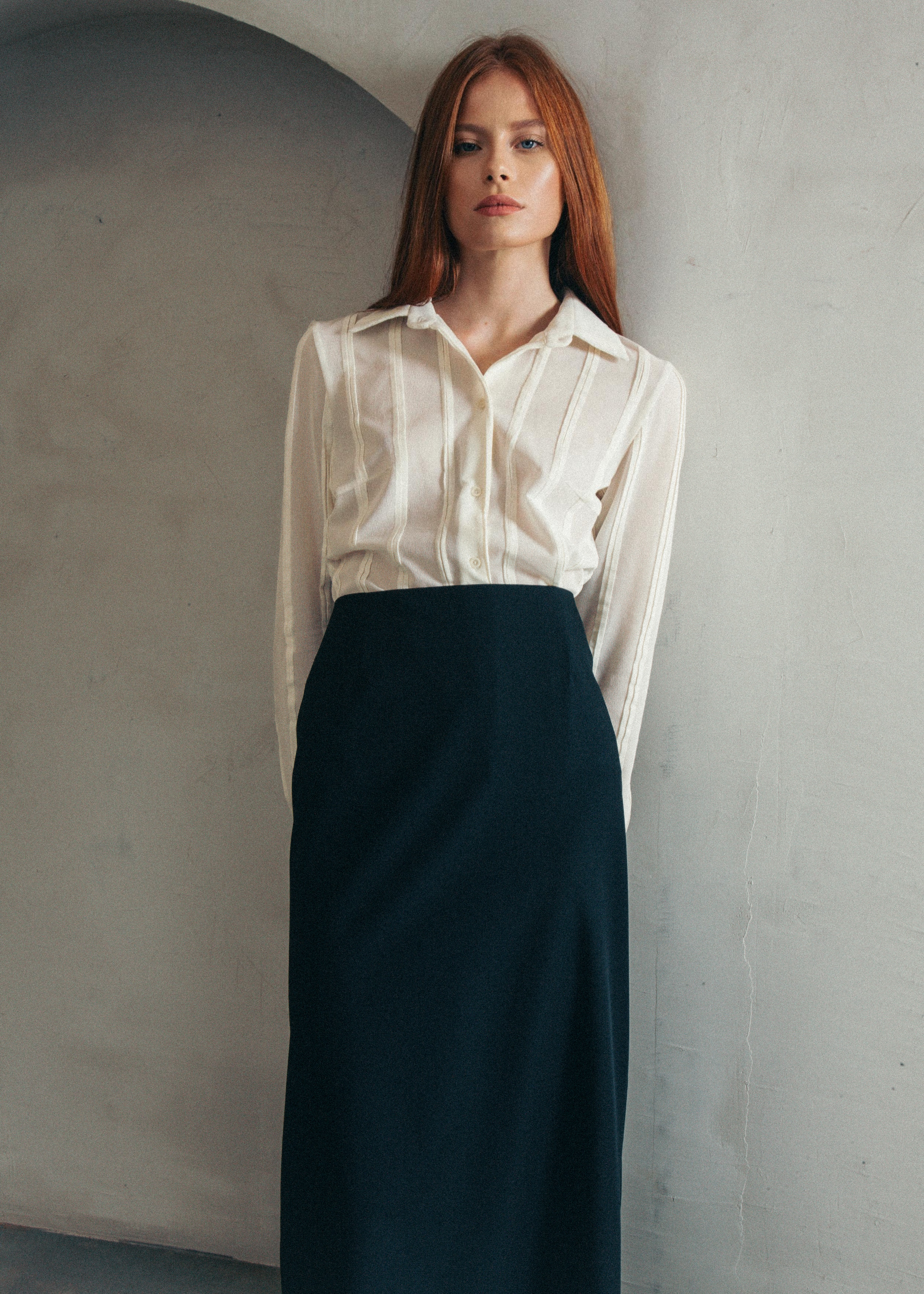 Юбка карандаш из костюмной ткани с разрезом сзади.
